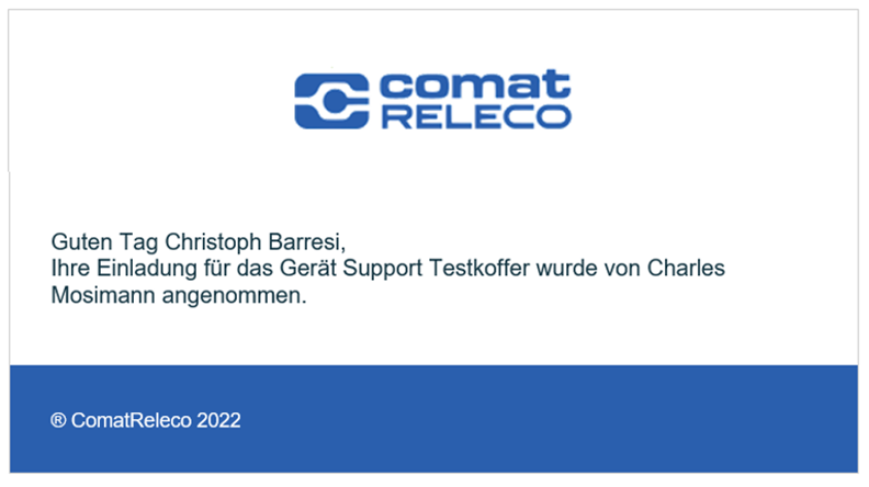 Besitzt die neue Besitzerin oder der neue Besitzer noch kein IoT‑Portal‑Konto, wird eine Einladung zur Kontoerstellung per E‑Mail versendet.
