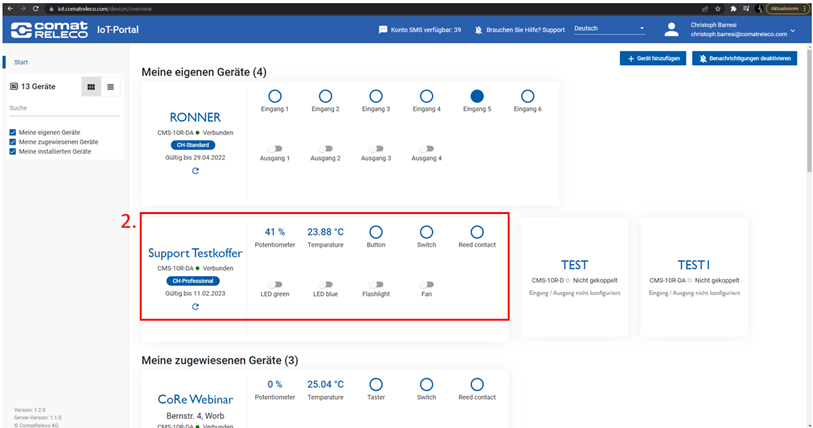 Eine Änderung des Besitzers ist nicht über Tablet oder Smartphone möglich.Wählen Sie das gewünschte CMS‑10R Gerät aus, um in die Geräteansicht zu gelangen.